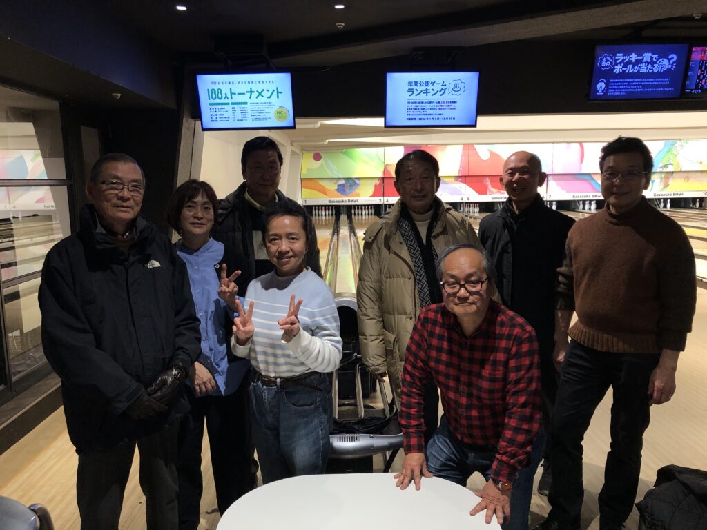 活動は年4回程度、原則月初めのウィークエンドに、笹塚ボウルにて実施しています。この会のモットー「スコアーを競うのではなく親睦を旨とする、参加する事に意義あり」の精神で、ストライクとスペア?に拍手を送りつつ楽しんでいます。